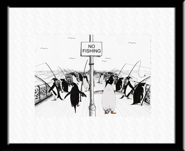 Pier Cafe, Adelies and baby with heart - 10" x 8"